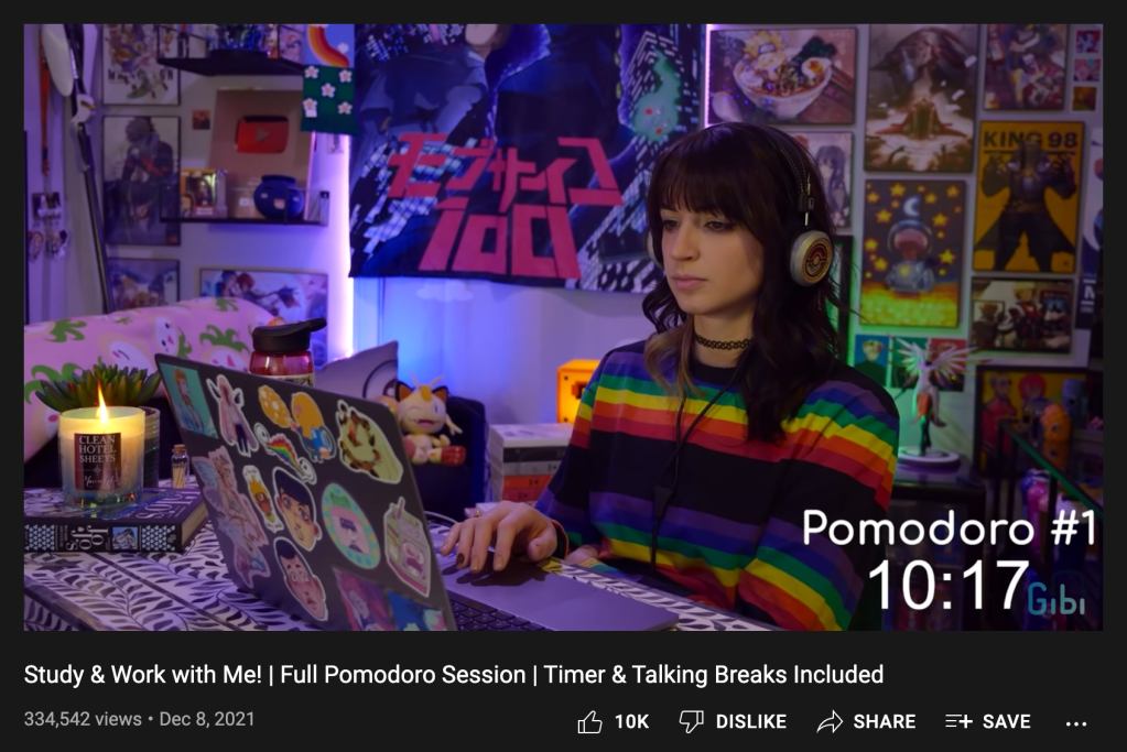 Figure 2: Gibi ASMR. 2019. ‘Study and Work with Me!’ [screenshot] YouTube [online]. Available at: https://www.youtube.com/watch?v=jMQAdBICc7Y [Accessed 26th December 2021].